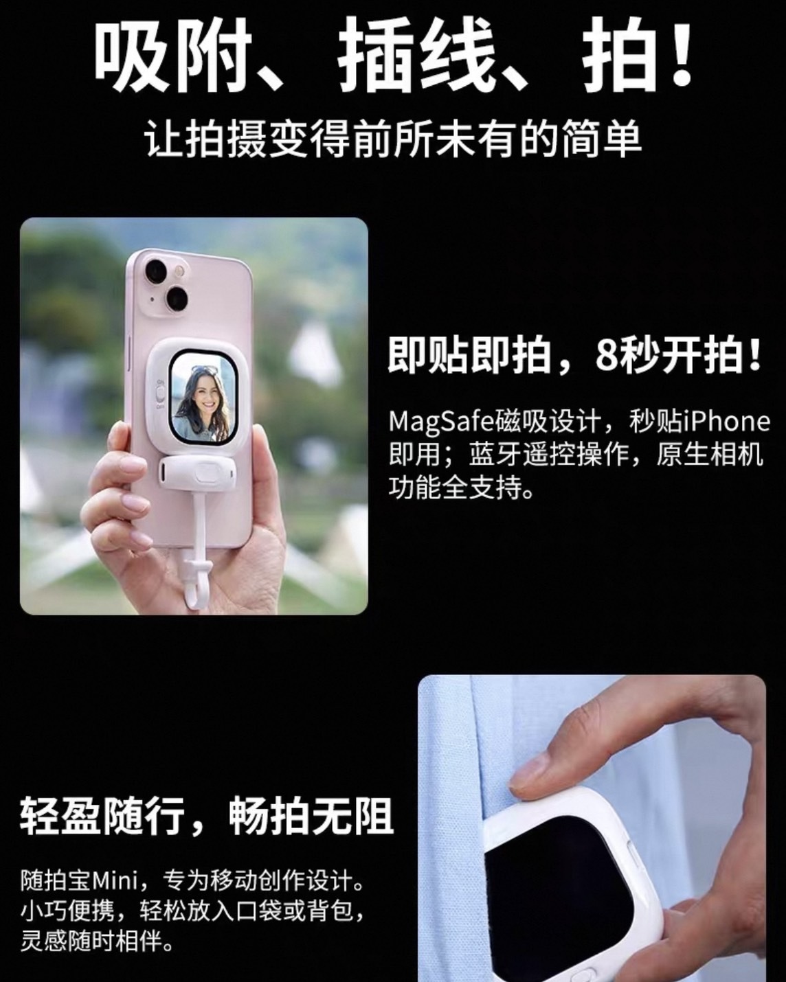 內附磁吸貼僅支持i PHONE 5~16型號適用🔹可以遠端操控 拍照不再求人